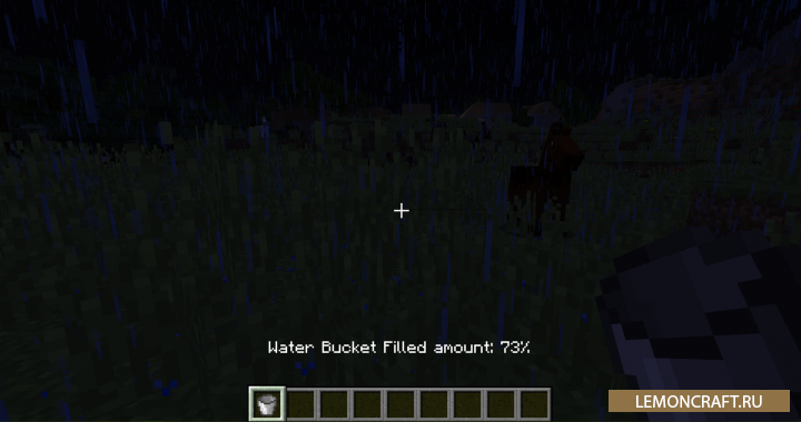 Мод на полезное ведро Collecting Rain добавляет в игру возможность собирать дождевую воду в ведро. В итоге вы сможете получить ведро, полностью наполненное водой. Для того, что бы ведро наполнилось, должен идти дождь. В ясную и солнечную погоду эта фишка не работает. В настройках мода, по умолчанию, установлено моментальное наполнение ведра водой, что не очень честно ). В конфиге вы можете это исправить, установив более реальное время, за которое должно наполняться ведро.