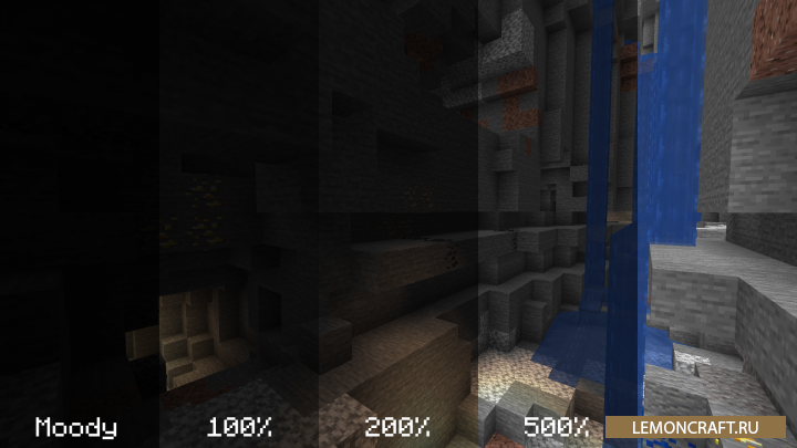 Мод на повышенную яркость Boosted Brightness добавляет в игру возможность изменить яркость игры больше чем на стандартные +100%. После установки мода вы сможете увеличить яркость экрана до 1200%. В результате в самых темных биомах вы будете чувствовать себя как днем. Для увеличения яркости, по умолчанию, назначена кнопка b, с ее помощью вы можете изменить стандартную яркость на повышенную. Для примера, данная функция окажется очень полезной для исследования пещер.