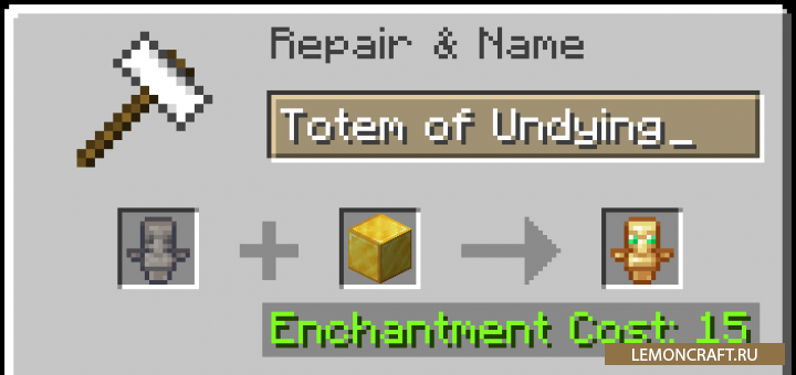 Мод на мертвый тотем Dead Totems добавляет в игру возможность использовать тотемы неограниченное количество раз. После установки мода использованный тотем не будет исчезать, он умрет. Для его оживления воспользуйтесь наковальней и блоком золота.